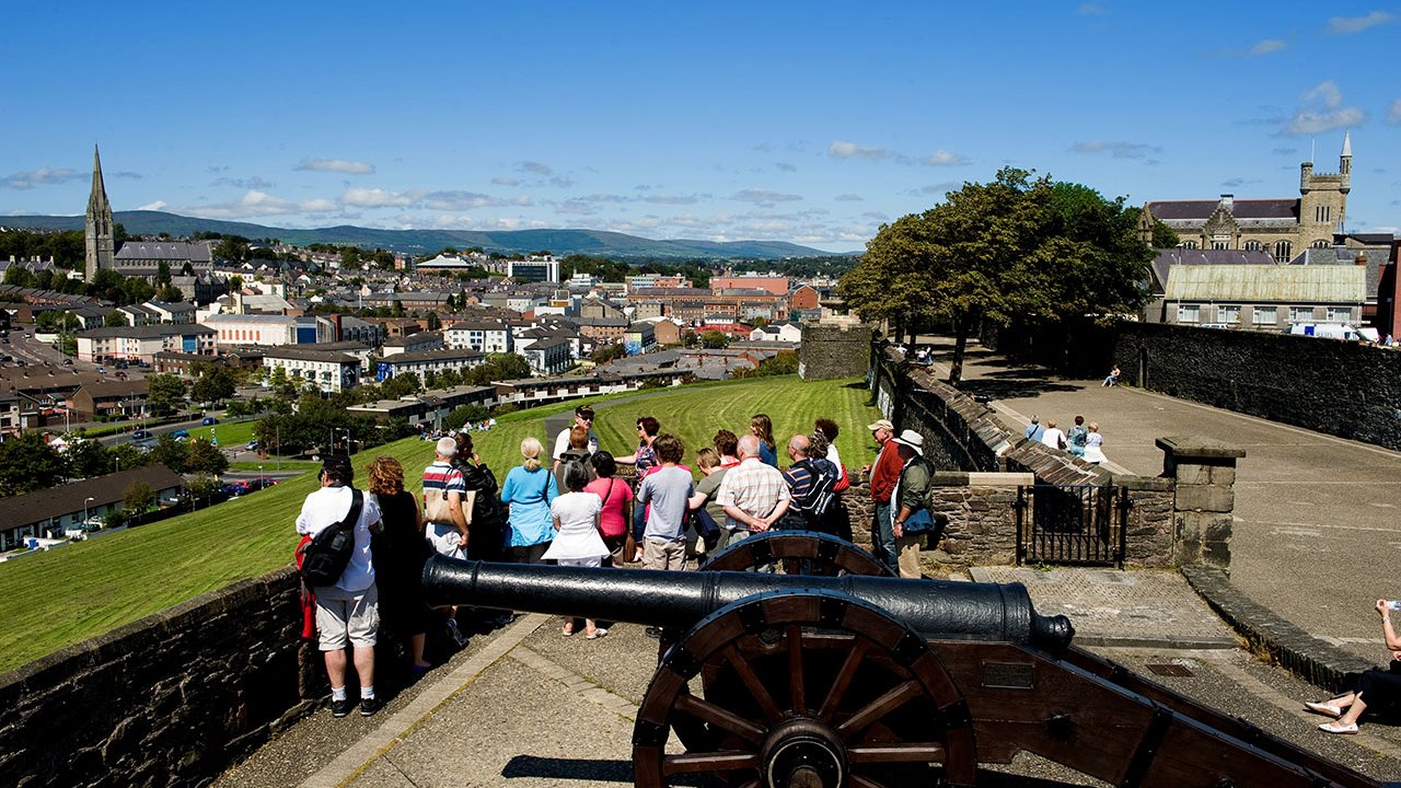 Find out also how today's unionist's rallying call of 'No Surrender' and the nationalist slogan 'Free Derry' came about This guided tour provides an opportunity for the visitor to walk the walls giving a platform to view the original street plan below which is still in existence today, and then to be led on a guided tour of the nearby Bogside area situated just outside the old town walls.